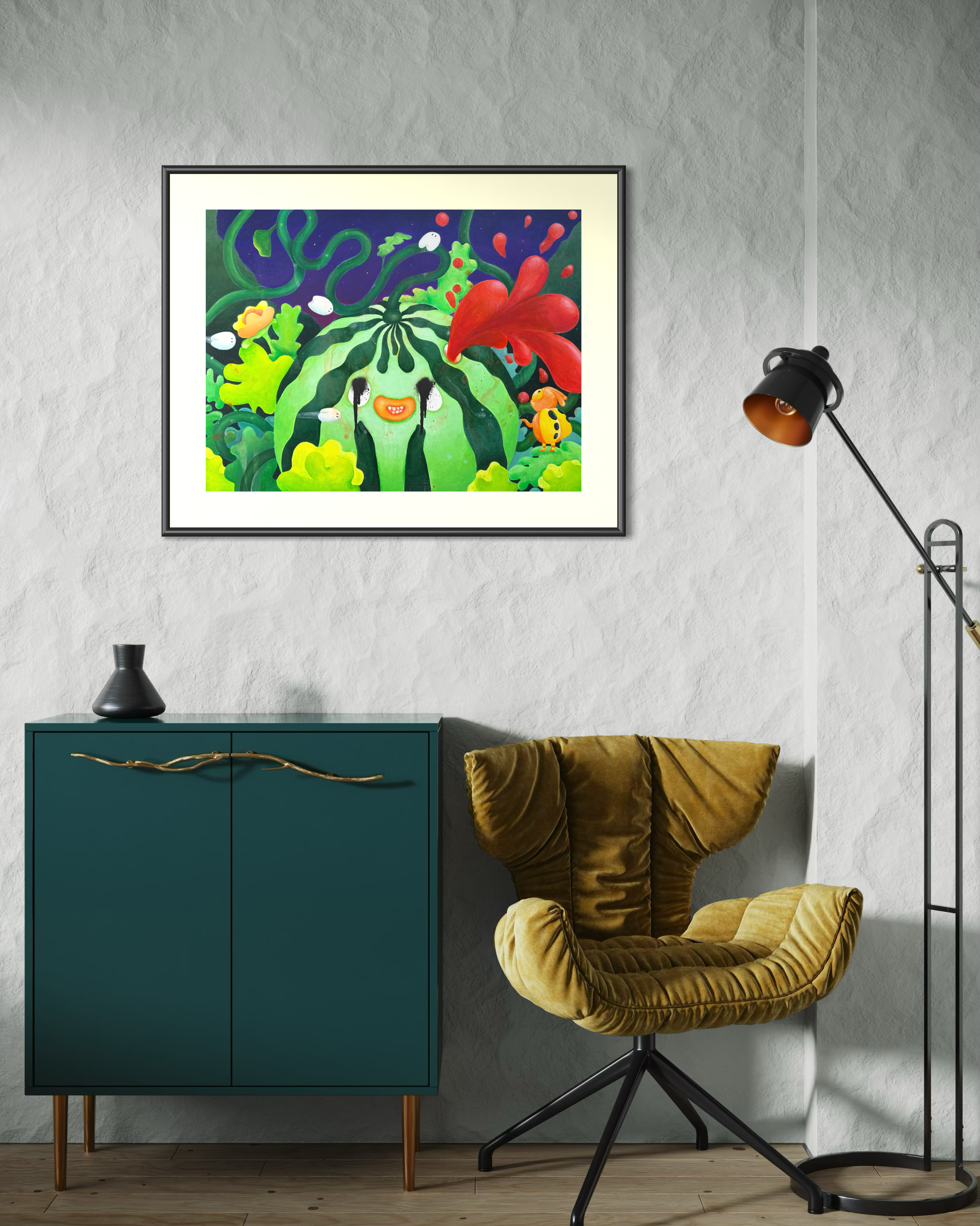 The exhibition transforms the humble corner store into a theatrical stage where fresh produce becomes protagonists navigating burnout, apathy, and over-stimulation in modern urban life. Through KELLYHOSY's distinctive character-driven visual language, everyday fruits and vegetables embody the emotional complexity of 'unhinged optimists'.